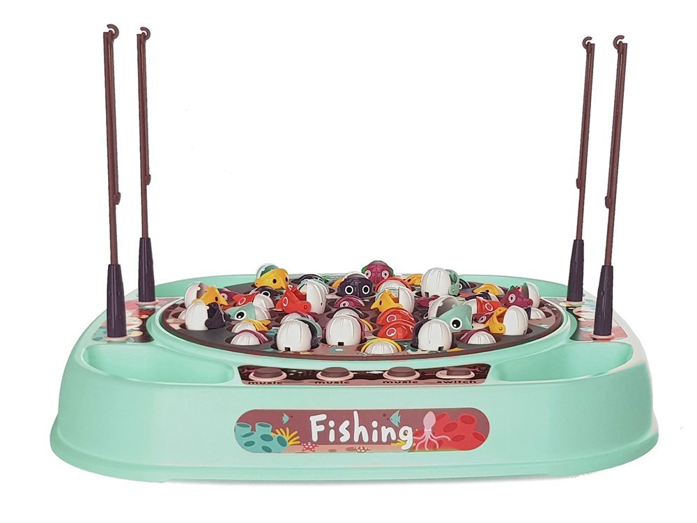 Koło z rybkami kręci się w rytm wesołej muzyki, co utrudni złapanie rybki. Do wyboru są aż trzy rodzaje melodii, zabawa szybko się nie znudzi! Na bokach planszy znajdują się małe pojemniki, gdzie można odkładać złapane rybki.