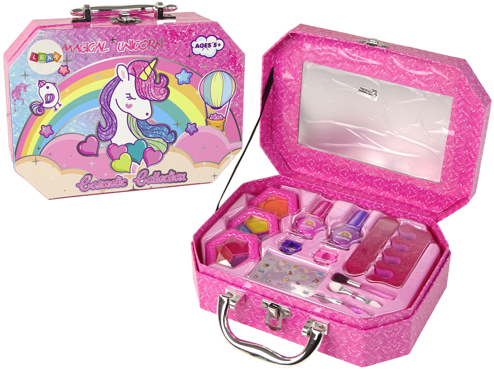 Zapraszamy do magicznego świata urody dzięki naszemu zestawowi piękności w uroczej walizce z motywem jednorożca. W zestawie znajdziesz wszystko, czego potrzebujesz, aby wyrazić swoją kreatywność i eksperymentować ze stylem.