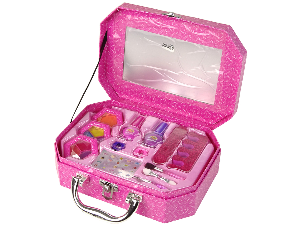 Pomarańczowy cień do powiek oraz sześć kolorów błyszczyku do ust pozwolą Ci stworzyć piękne makijaże, które podkreślą Twoją urodę. W zestawie znajdziesz również 3 pędzelki umożliwiające aplikację makijażu. W walizce znajduje się także wmontowane lustro, które ułatwi Ci malowanie i stylizację.