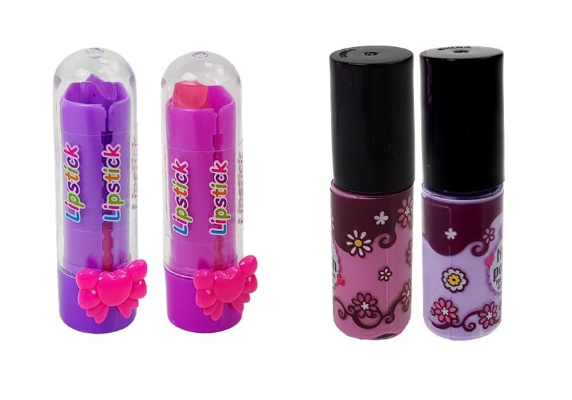 – 2 lakiery do paznokci (fioletowy i różowy)