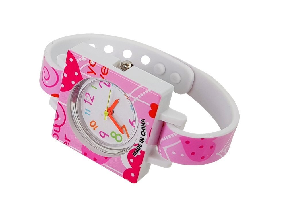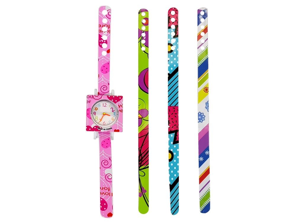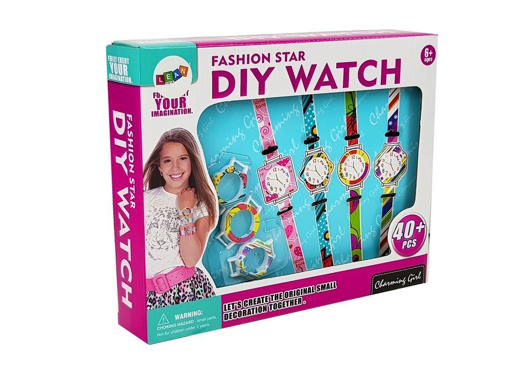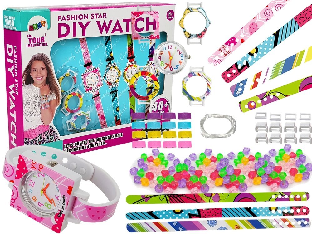 Wszelkie elementy zestawu do robienia zegarków dostosowane są rozmiarem do rąk małych dziewczynek. Paski wykonane są z miękkiego materiału łączącego właściwości gumy i silikonu, a ramki zegarków z wytrzymałego, solidnego plastiku. Różne kształty i kolory regulowanych pasków oraz ramek zegarków w połączeniu z akcesoriami typu koraliczki i rzemyki sprawią, że ilość kombinacji będzie nieograniczona. Całość zestawu składa się z 40 elementów.