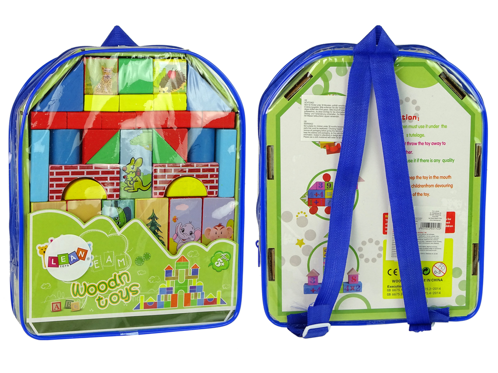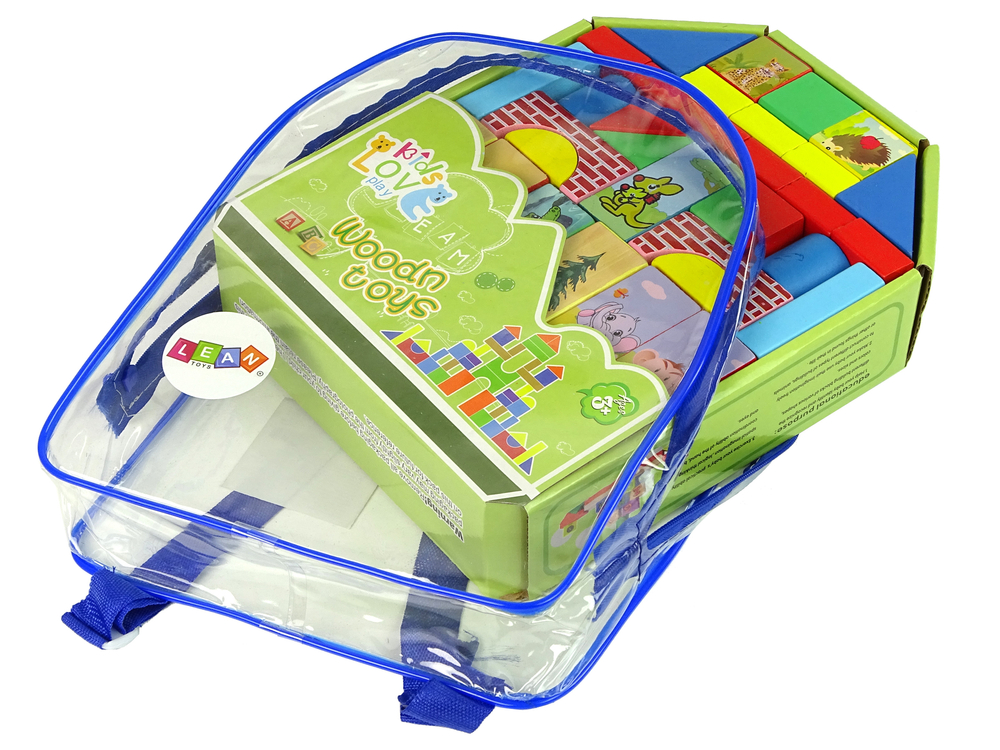 Cały zestaw znajduje się w przezroczystym plecaku, dlatego można przenosić klocki z miejsca na miejsce. Dzieci poznają i nauczą się nazw zwierząt, kształtów i kolorów. Pomoże to im rozwinąć się wielopłaszczyznowo, ale i rozpocząć naukę przez zabawę.