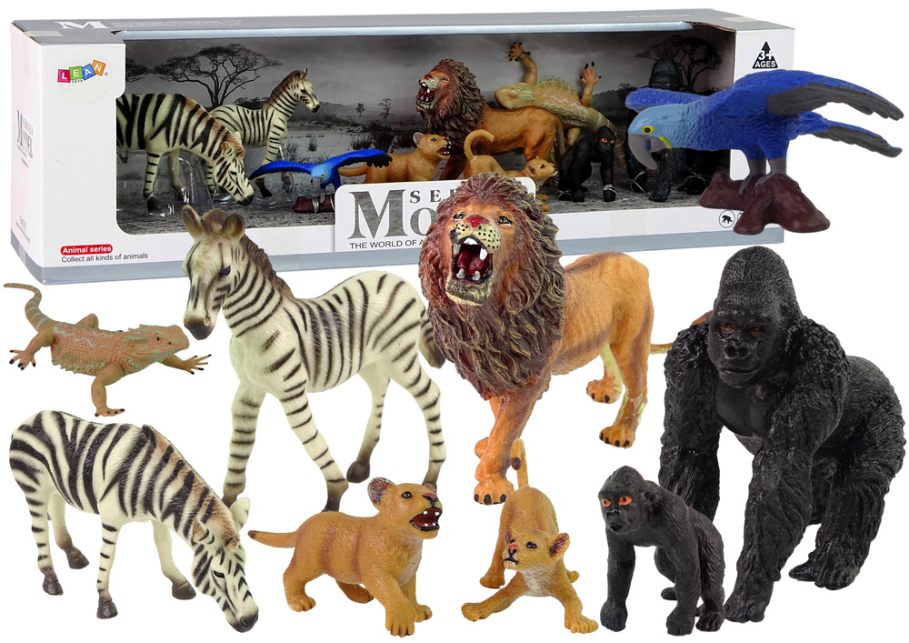 Zestaw Figurek Afryka Dzikie Zwierzęta Zebra Goryle Papuga