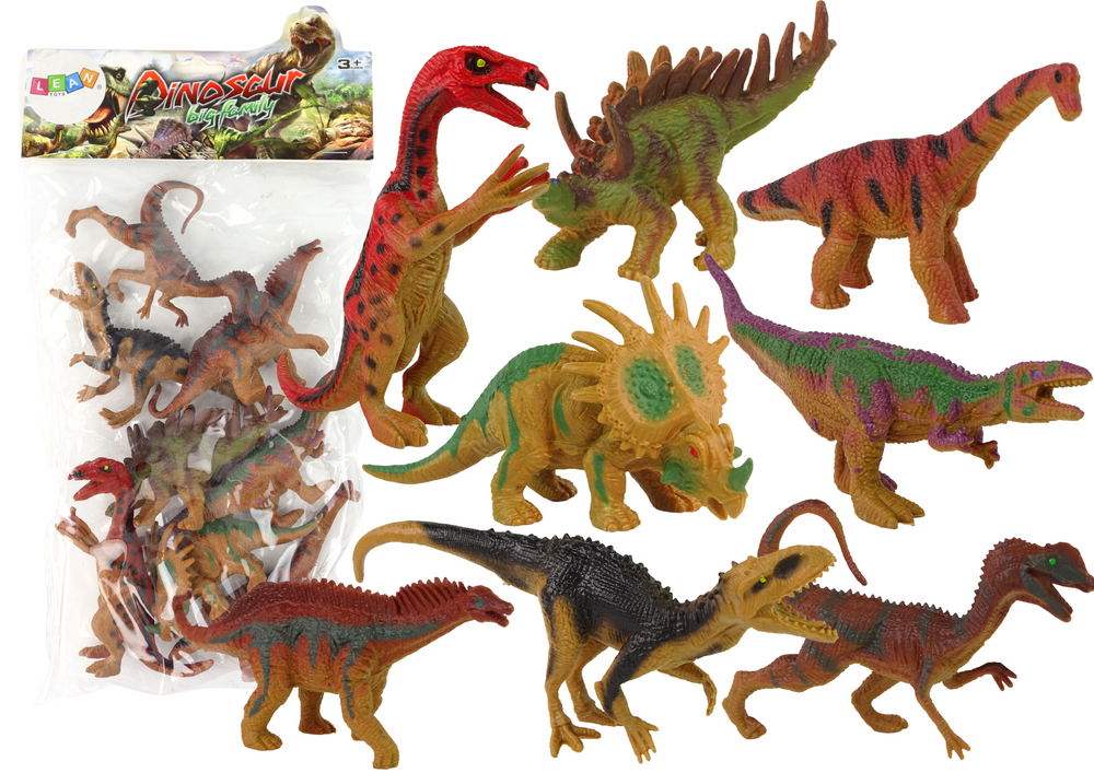 To doskonały zestaw dla małych miłośników prehistorycznych stworzeń. W jego skład wchodzi osiem realistycznych figurek różnych gatunków dinozaurów: Triceratopsa, Welociraptora, Kentrosaurusa, Maiasaura, Styrakozaura, Dilophosaurusa, Terizinozaura oraz Amargazaura. Każdy z nich wyróżnia się unikalnym kolorem i imponującą wielkością, co dodaje różnorodności do zabawy.