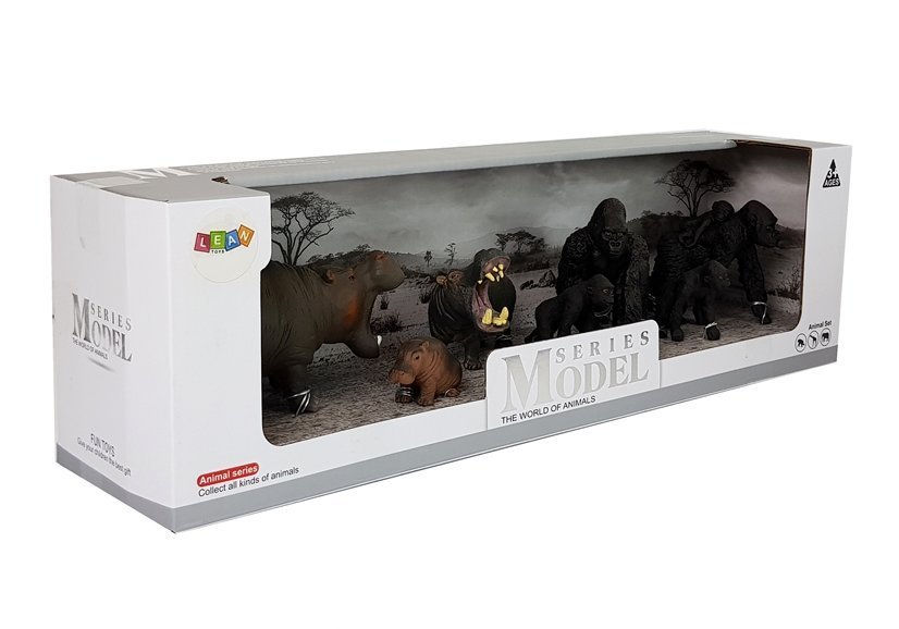 Zestaw Figurek Zwierzęta Safari Hipopotamy Goryle