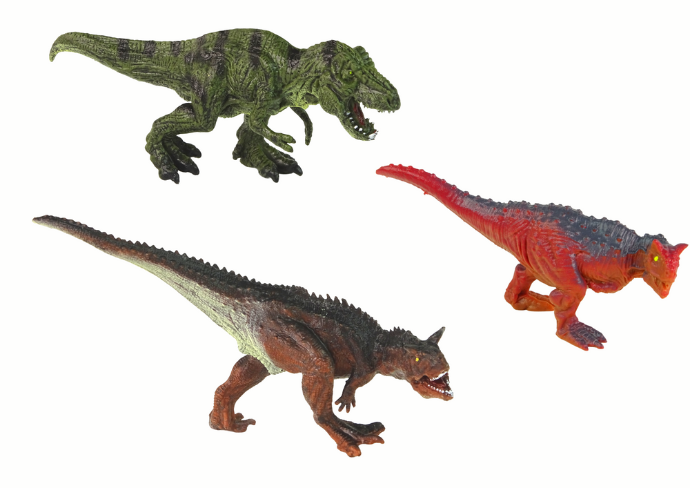 Figurki dinozaurów są różnej wielkości, od małych po większe modele, co dodaje różnorodności i pozwala na tworzenie różnych scenariuszy podczas zabawy.