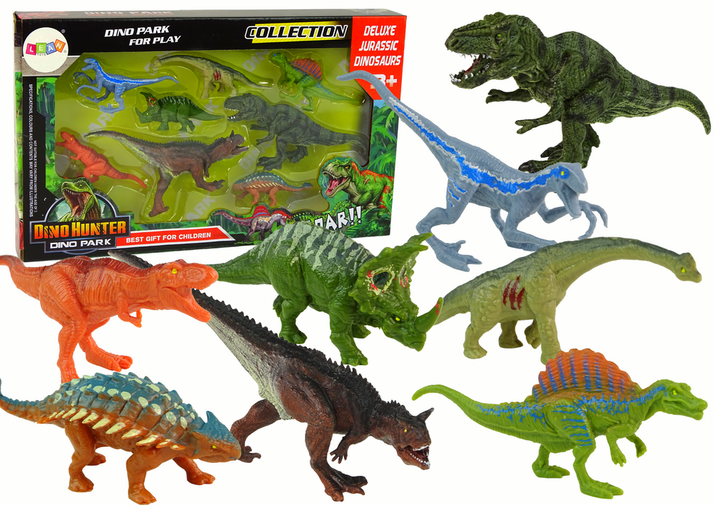 To fascynująca kolekcja zabawek, która przenosi dzieci w prehistoryczny świat tych gigantycznych stworzeń. Ten zestaw zawiera 8 różnych dinozaurów, reprezentujących inny gatunek, co pozwala dzieciom na różnorodność w zabawie.