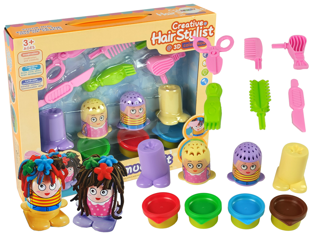 Zabawa z ciastoliną zdecydowanie rozwija umiejętności plastyczne i motoryczne dziecka. Małe dzieci uwielbiają tworzyć dla samych siebie kolorowe fryzury, jednakże zabawa własnymi włosami może być odrobinę niebezpieczna. W tym miejscu sytuację może z łatwością uratować nasz zestaw!