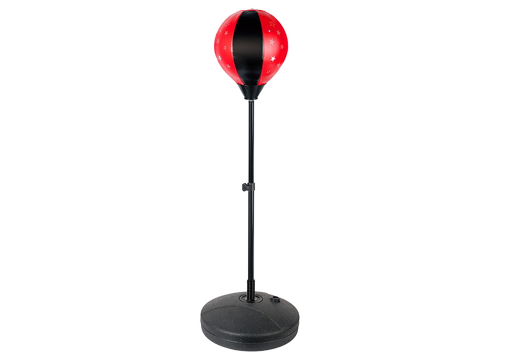 Zestaw bokserski dla dzieci to idealny wybór dla młodych entuzjastów sportu, którzy chcą rozwijać swoje umiejętności bokserskie w bezpieczny i zabawny sposób. Głównym elementem zestawu jest gruszka bokserska umieszczona na regulowanej nóżce. Gruszka jest w kolorze czarno-czerwonym, ozdobiona gwiazdkami, co dodaje jej atrakcyjności i dynamizmu. Gruszka jest samo pionizująca się, co oznacza, że po każdym uderzeniu wraca do swojej pierwotnej pozycji, umożliwiając ciągłą zabawę.