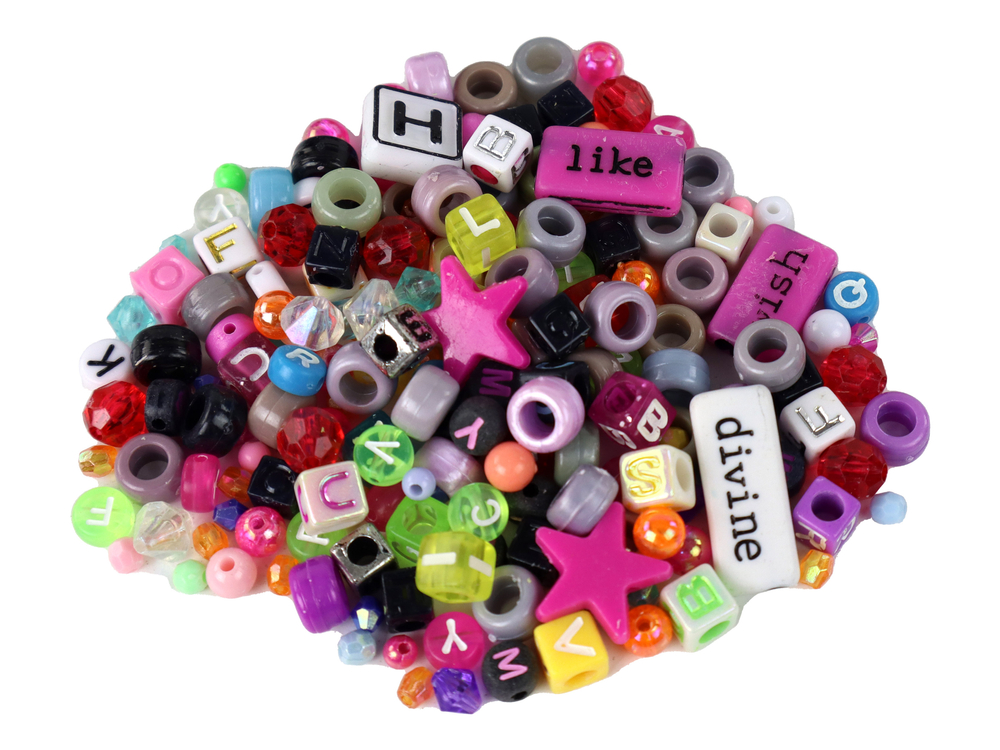 Dodatkowym elementem zestawu są koraliki z literkami i napisami, które pozwalają na dodanie osobistego przesłania lub imienia do stworzonych bransoletek. To świetny sposób na personalizację i tworzenie prezentów dla bliskich.