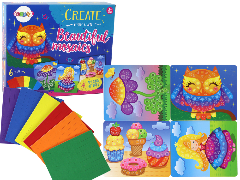 Zabawka DIY wyklejanka to kreatywny zestaw, który zapewni dzieciom wiele godzin zabawy oraz rozwijania umiejętności manualnych i poznawczych. Zestaw zawiera 4 różnorodne obrazki: księżniczka, słodycze, sowa i kwiatek, które stanowią fascynujące motywy dla małych konstruktorów.