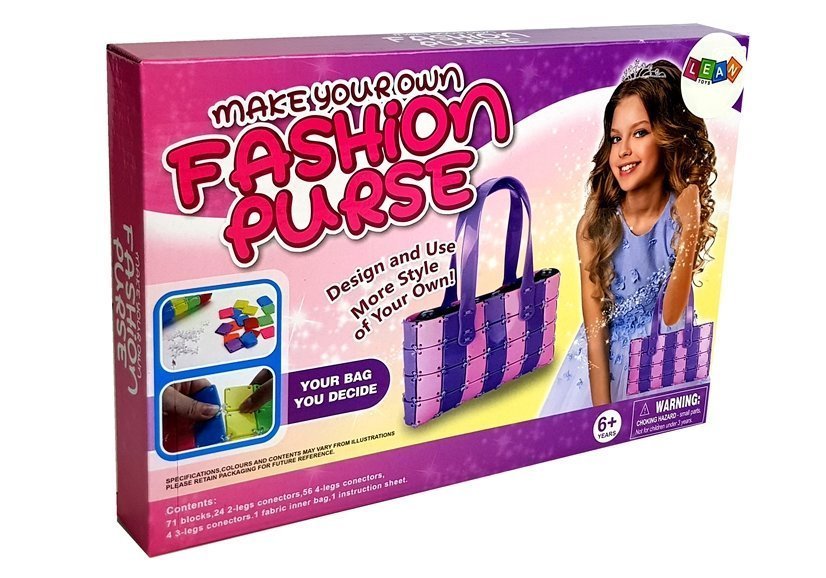 Jeżeli Twoje dziecko jest kreatywne to będzie idealny zestaw dla niego. Nasza torebka będzie idealnym uzupełnieniem garderoby małej księżniczki. Torebka w pięknym różowo-fioletowy kolorze. Wypełniona czarną poszewką. Torebka posiada dwie rączki do trzymania. Zestaw nie zawiera igieł, mocowanie jest za pomocą plastikowych śrubek i nakrętek. Zestaw całkowicie bezpieczny dla dzieci.