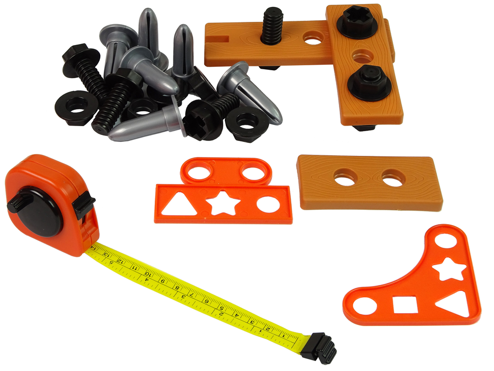 Wielofunkcyjny zestaw narzędzi został wykonany z plastiku, co odpowiada za niską wagę poszczególnych elementów. Stylistyka zabawki nawiązuje do prawdziwych narzędzi, co połączono z prostą, neutralną kolorystyką — dzięki temu dziecko poczuje się jak prawdziwy majsterkowicz. Dużą zaletą zabawek jest dostosowanie ich wymiarów do rączek dzieci, co znacznie ułatwi korzystanie z nich.