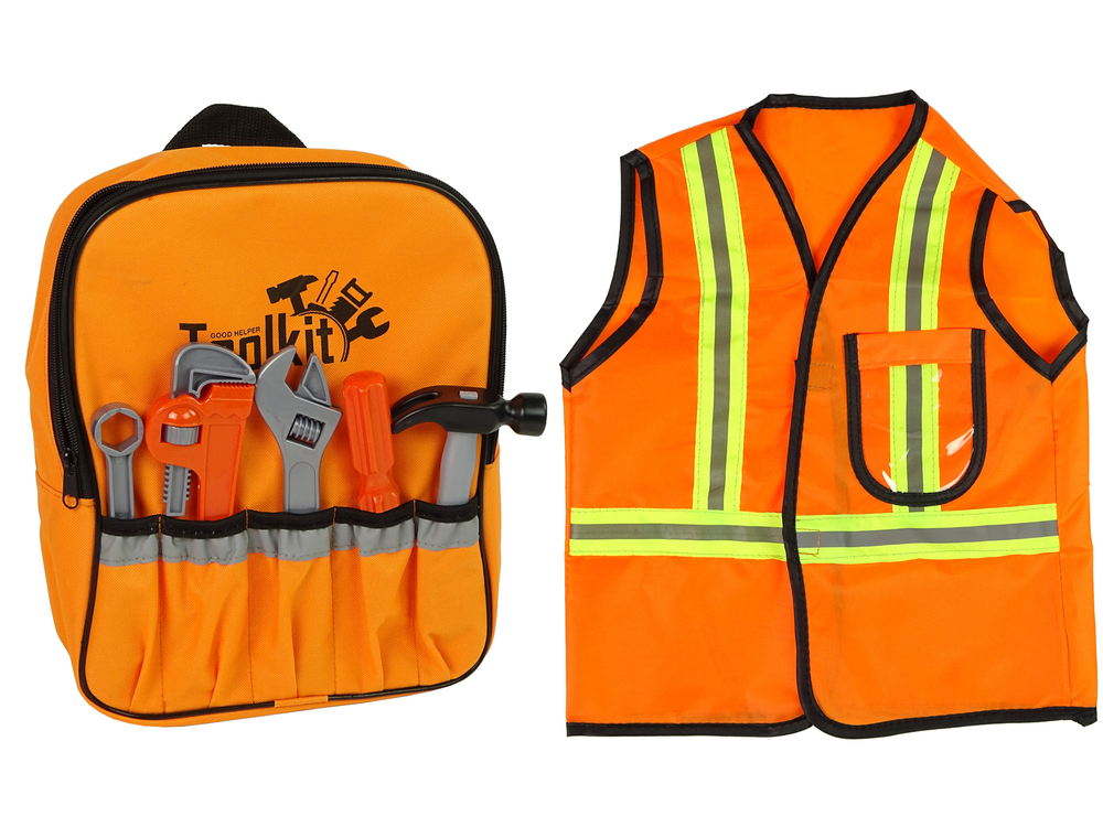 Zestaw Majsterkowicza Plecak Kask Narzędzia Pomarańczowy Okulary