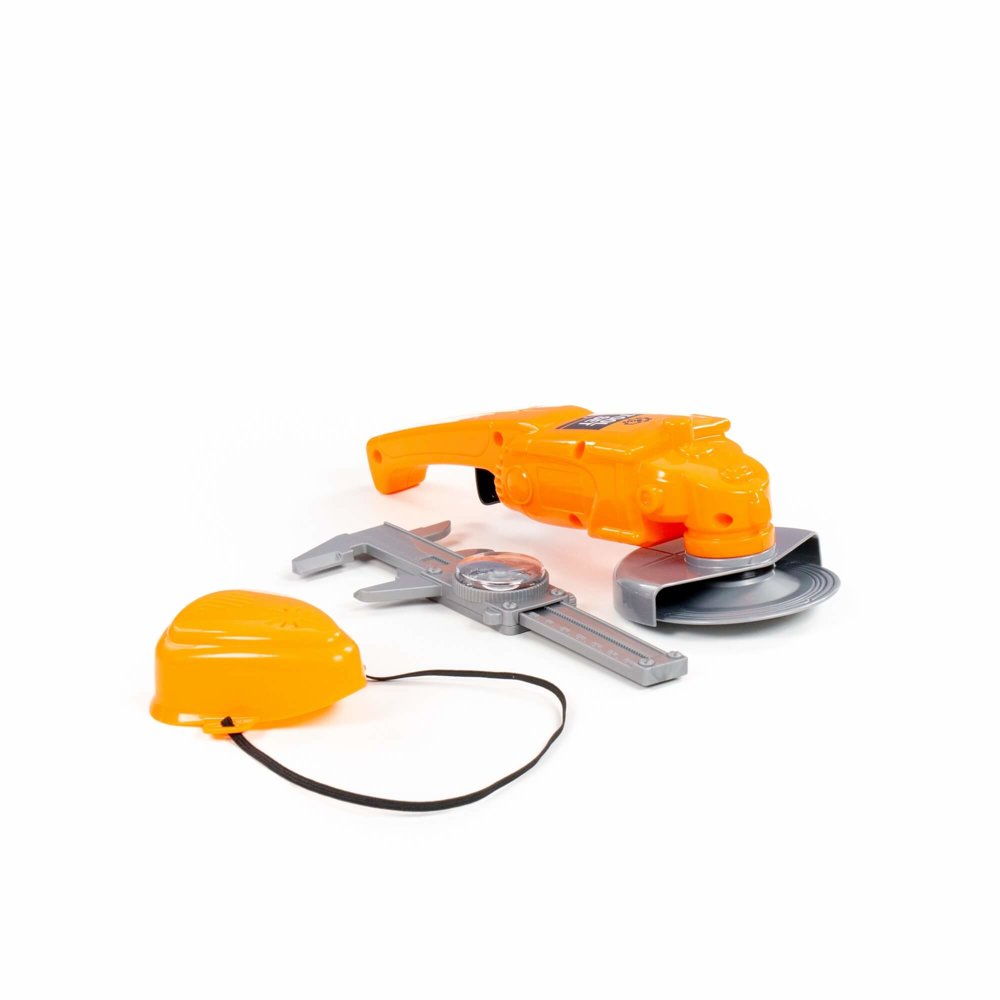 W danym zestawie znajduje się szlifierka, naciskając na przycisk, tarcza zaczyna się obracać. Aby zabezpieczyć się przed pyłami lub kurzem, majsterkowicz ma możliwość założyć maseczkę. Suwmiarka natomiast pozwoli na dokładne wymierzenie obszaru do pracy. Całość wykonana jest w pomarańczowym kolorze, idealnie dopasowana do małych rączek. Zestaw sprawi niejednemu małemu pomocnikowi niesamowitą frajdę podczas zabawy przy majsterkowaniu.