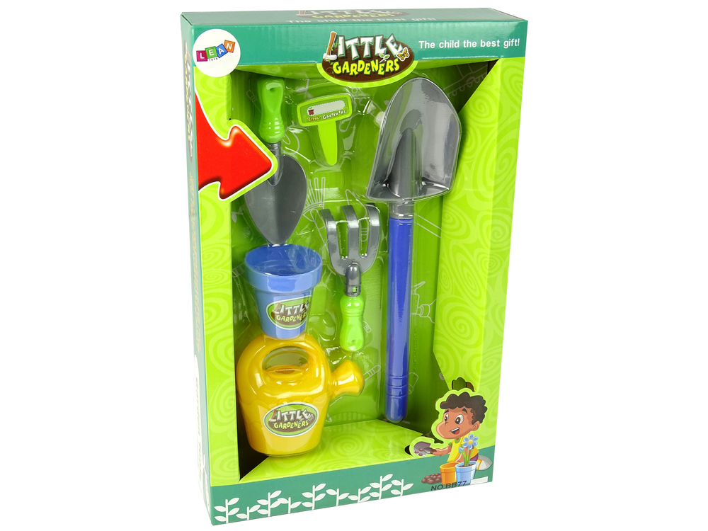 Zestaw zawiera narzędzia potrzebne w ogrodzie. Utrzymane w kolorach zieleni, niebieskiego i szarego. Idealny zestaw na wiosenne prace w ogrodzie dla Twojego dziecka !