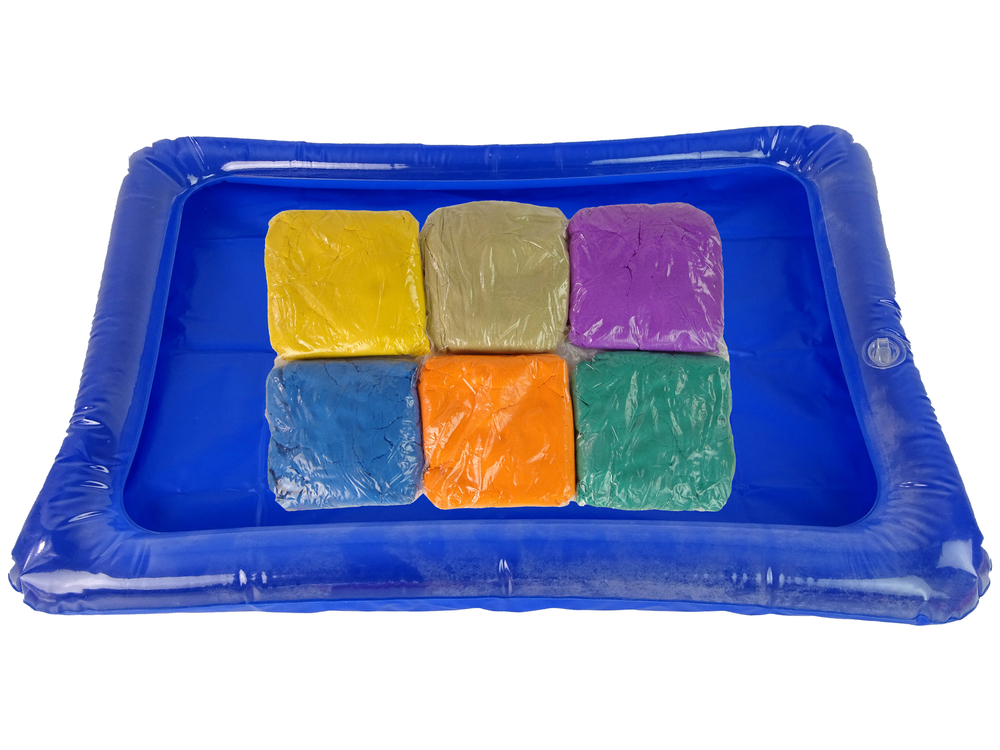 – 6 kolorów piasku kinetycznego: żółty, zielony, pomarańczowy, jasny brązowy, czerwony, niebieski