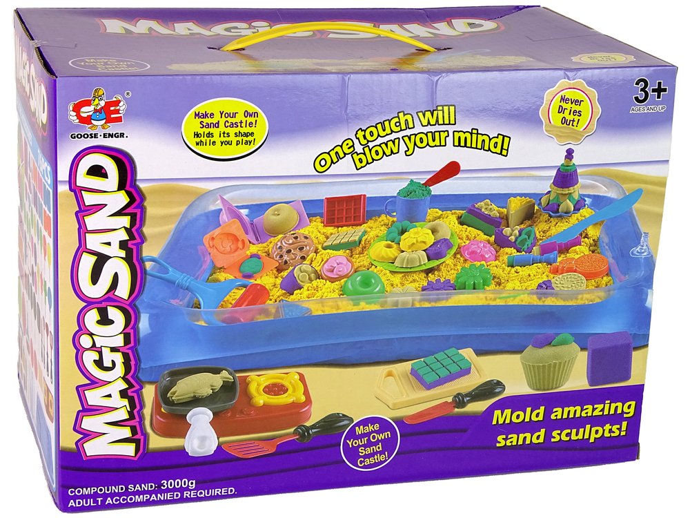Taki zestaw idealnie sprawdzi się dla Twojego dziecka aby rozwinąć wyobraźnię oraz kreatywność. To także świetna zabawa dla całej rodziny, ponieważ każdy może wziąć udział w tworzeniu ciekawych form z piasku.
