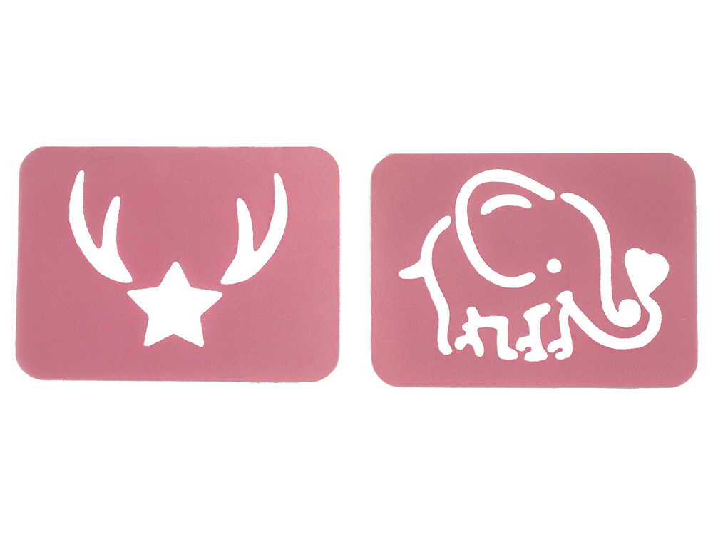 A to nadal nie koniec! Nasz zestaw zawiera także dwa szablony w kształcie słonika i gwiazdki. Co je wyróżnia? Są większe niż standardowe, co oznacza, że można je wykorzystać do zdobienia różnych rzeczy. Słonik i gwiazdka to urocze wzory, które nadadzą wyjątkowego uroku każdemu projektowi Twojej małej artystki.