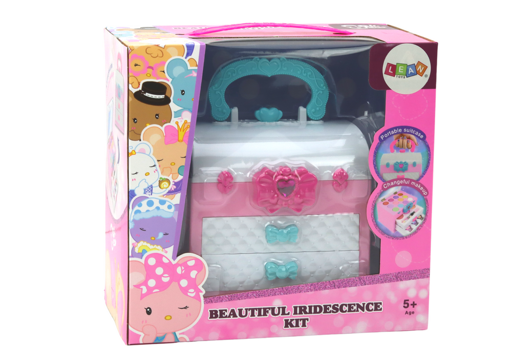Po otwarciu kuferka dziecko zostaje zaskoczone lusterkiem oraz bogatą paletą kolorowych cieni i błyszczyków, które pozwolą mu na eksperymentowanie z makijażem i tworzenie różnorodnych stylizacji. To doskonała okazja do rozwijania kreatywności i wyobraźni.