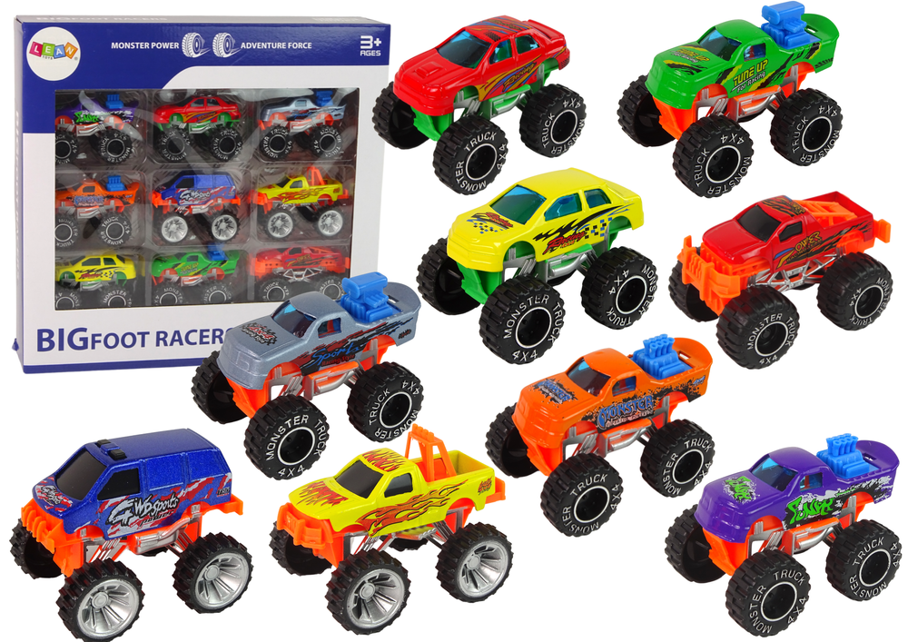 Zestaw Pojazdów Auta Monster Truck Różne Kolory 9 szt.