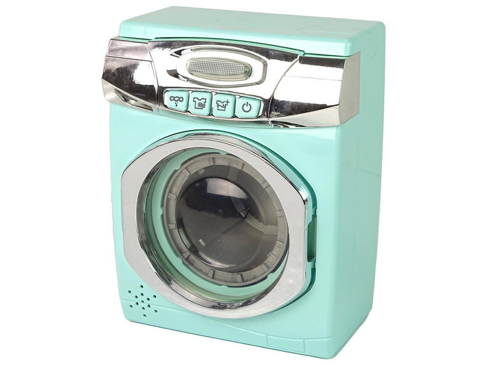 Pralka, w miętowym kolorze, zaskoczy cię swoim realistycznym wyglądem i interaktywnymi funkcjami. Zasilana trzema bateriami AA, nie tylko wydaje dźwięki, ale także porusza się, zapewniając wspaniałą symulację prawdziwej pracy.