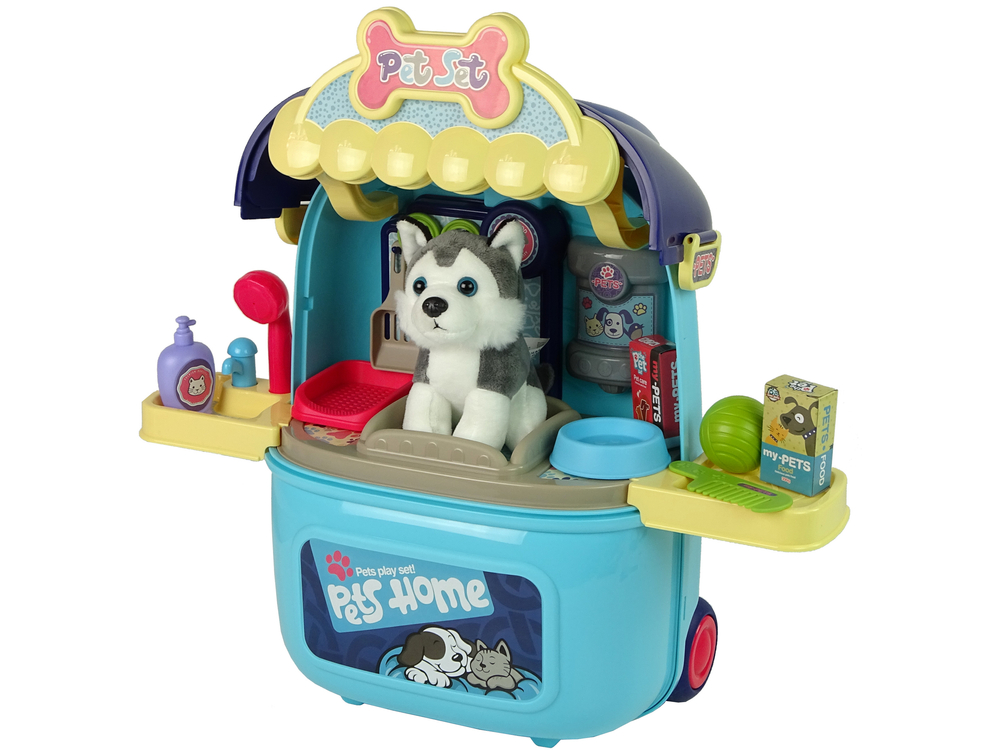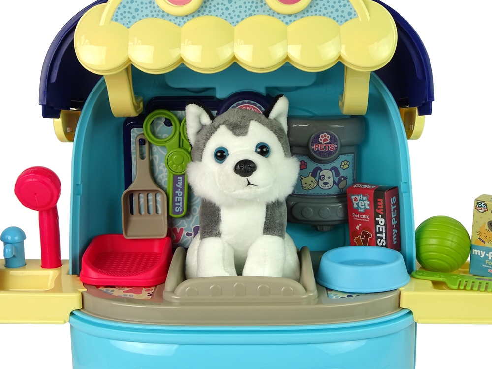 Maluch, dzięki wszystkim akcesoriom może przygotować swojego zwierzaka na wyjście. Szampon i miejsce na prysznic pozwoli na cudowną, pachnącą kąpiel. Potem pieska należy dobrze wyczesać lub pociąć sierść, pazurki za pomocą nożyczek. Karma i czerwona miseczka pozwolą na nakarmienie swojego przyjaciela.