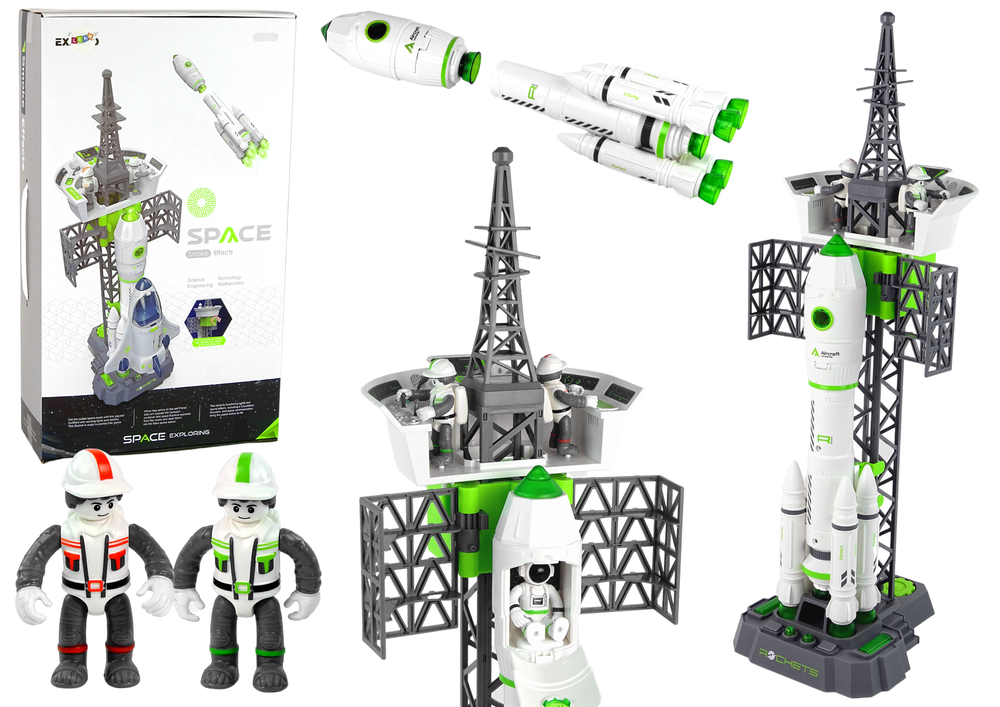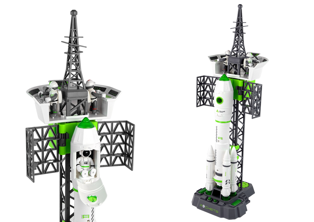 Zestaw zawiera replikę profesjonalnej stacji kosmicznej, z której startują rakiety w kosmos. Wieża kontrolna zawiera pulpit do sterowania i kontrolowania rakietą, specjalne przycisk uruchamiają dźwięki startu, alarmowy. Droga w kosmos posiada dwie możliwości: lot samą rakietą lub z promem kosmicznym.