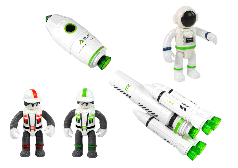 Wszelkie elementy kosmicznego kompletu wykonane są z wysokogatunkowego materiału, czyli plastiku. Zabawka posiada certyfikat CE, zapakowana jest w kartonowe pudełko ozdobione kosmicznym motywem. Rakieta zasilana jest trzema bateriami 1,5V AAA, brak w zestawie. Kapsuła zasilana trzema bateriami AG13, w zestawie. Kokpit zasilany trzema bateriami AG13.