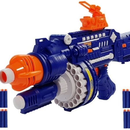 Wszystkie elementy wykonane są z wysokogatunkowego tworzywa, co jest gwarancją, że będą służyć dziecku przez długi czas. Całość utrzymana jest w kolorystyce ciemnej zieleni. Pistolet po naciśnięciu na spust wydaje odgłos strzału, przeładowania oraz odgłos upadającej łuski. Po założeniu tłumika dźwięk jest całkiem inny. W czasie tych czynności można zauważyć dodatkowo efekty świetlne na broni. Żaden przeciwnik nie ucieknie! Wyobraźnia malucha na pewno się rozwinie. Natomiast, aby zwiększyć celność i precyzję w pistolecie zamontowany jest celownik, który sprecyzuje strzał. Latarka oświetli dodatkowo pomieszczenie. Długi gumowy nóż będzie także niezbędnikiem podczas bitwy.