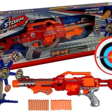 Pistolet zasilany jest trzema bateriami AG13 1.5V (w zestawie). Zabawki przeznaczone są dla dzieci powyżej 3. roku życia. Zestaw posiada certyfikat CE i jest zgodny z normą EN 71. Zestaw zapakowany jest w kartonowe pudełko, dzięki czemu nadaje się idealnie na prezent.