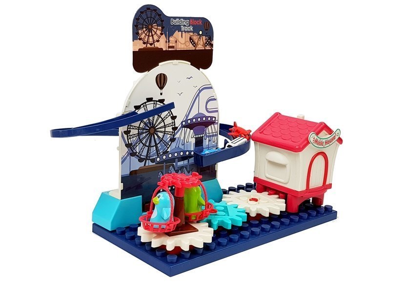Pierwszą czynnością, jaką musi wykonać to złożenie całości konstrukcji ” Domku i wesołego miasteczka”. Należy dobrze złożyć całą budowle, ułatwi to instrukcja dołączona do zabawki. Kolejną czynnością będzie włączenie domku i podziwianie swojej pracy. Domek ma cudną kolorystykę biało- różową i napędza całą zabawkę. Po włączeniu koła zębate zaczynają się kręcić, wprawiając w ruch inne elementy. Dodatkowo domek wydaje przyjazną muzyczkę. Duże wesołe miasteczko. Umieszczając pingwiny w koszyczku, kręcą się na karuzeli. Inna z atrakcji jest wesołe miasteczko ze zjeżdżalnią dla pojazdów.