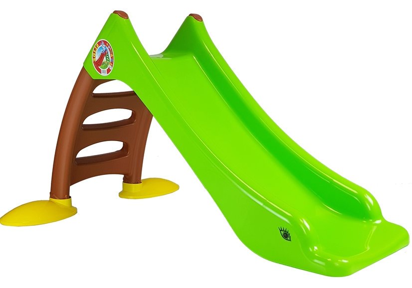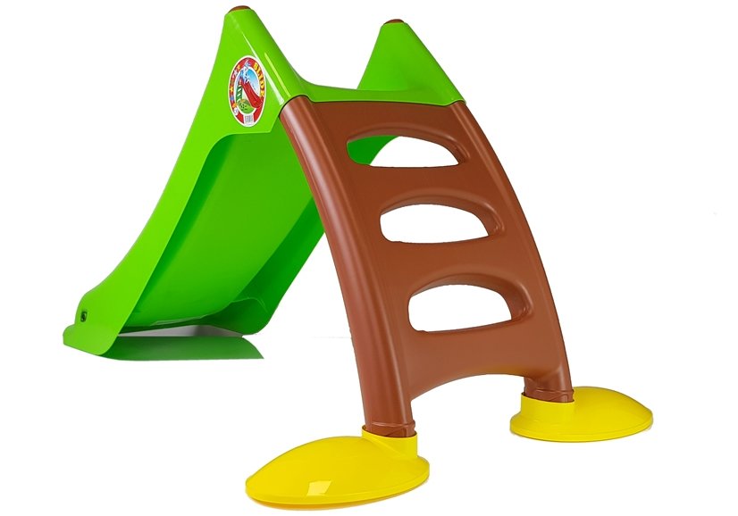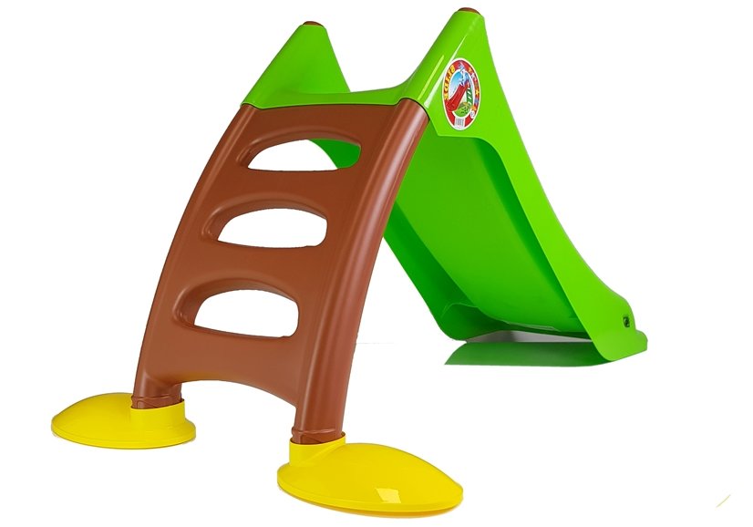 Na zjeżdżalnie można wejść po trzystopniowej drabince w kolorze brązowym, a sam ślizg występuje w kolorze zielonym. Wysokość całej zjeżdżalni od podłoża to 75 cm! Zjeżdżalnia nie posiada żadnych ostrych krawędzi, jest wykonana z wysokiej jakości materiałów i tworzyw sztucznych. Przy drabince znajdują się nóżki w kolorze żółtym.
