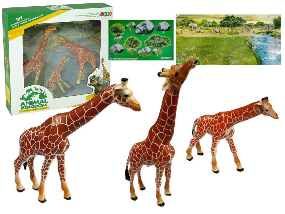 Żyrafy Figurki Edukacyjne Rodzina 3 sztuki + Tło Afryka