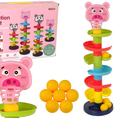 Sorter Edukacyjna Zjeżdżalnia Piłeczek 6 Poziomów Świnka Kosz Dzieci pomiędzy pierwszym a drugim rokiem życia każdego dnia odkrywają świat! Kolorowa zjeżdżalnia rozwinie Twoje dziecko na różnych płaszczyznach. Kolorowa zjeżdżalnia dla piłeczek to świetna zabawa, która nauczy Twoje dziecko, w jaki sposób kuliste kształty poruszają się po pochyłych powierzchniach. Żółte kulki wydają przyjemne dźwięki w trakcie turlania….