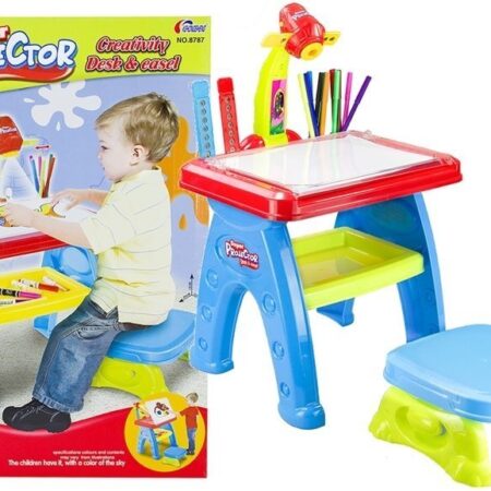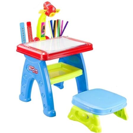 Biurko z projektorem Wielokolorowe biurko z rzutnikiem będzie spełnieniem marzeń każdego dziecka. Na stoliku można wyświetlać slajdy zarówno na płasko, jak i na ścianie. Zestaw z projektorem jest doskonałym narzędziem do nauki rysowania oraz odwzorowywania wybranych obrazków. W dolnej części stolika znajduje się półeczka na akcesoria, gdzie dziecko może przechowywać pisaki i inne konieczne do…