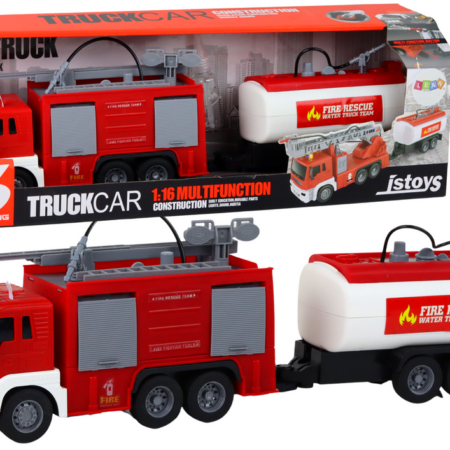 Straż Pożarna Z Naczepą Wóż Strażacki 1:16 Dźwięki Światła Zestaw ciężarówki strażackiej z naczepą, zaprojektowaną w skali 1:16, która zachwyca realistycznymi szczegółami i funkcjonalnościami. Ta zabawka nie tylko dostarcza dzieciom niezliczonych godzin zabawy, ale także edukuje je na temat pracy strażaków i ich pojazdów. Ciężarówka strażacka prezentuje się imponująco, odzwierciedlając realistyczne detale z profesjonalnego wozu…