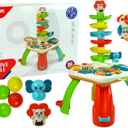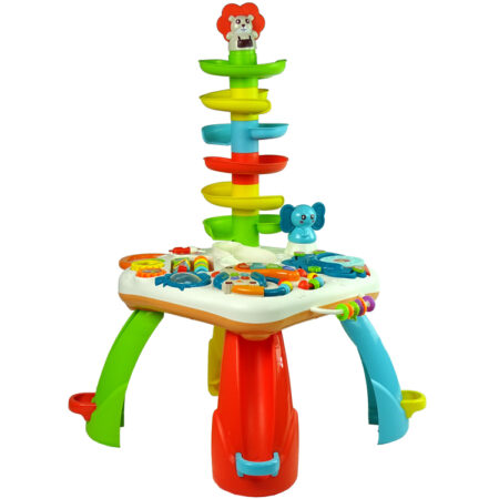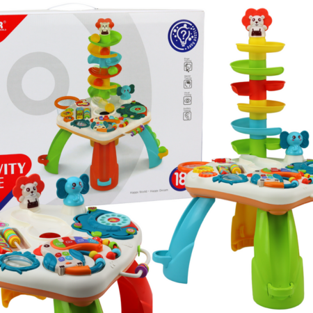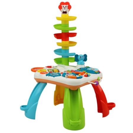 Stolik Panel Edukacyjny Zjeżdżalnia Interaktywny Pianinko Światła Dźwięki Stolik panel edukacyjny to niezwykłe źródło rozrywki i nauki dla małych odkrywców. Został on starannie zaprojektowany, aby zapewnić dzieciom wiele godzin kreatywnej zabawy i rozwijania umiejętności. Stolik stoi na czterech kolorowych nóżkach, które nadają mu stabilności i wesołego wyglądu. Nóżki występują w kolorach: niebieskim, żółtym, czerwonym…
