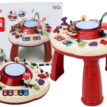 Stolik Panel Edukacyjny Interaktywny Pianinko Bębenek Czerwony Stolik edukacyjny to doskonała zabawka, która nie tylko dostarcza rozrywki, ale także wspiera rozwój poznawczy i manualny najmłodszych. Wyposażony w motyw zwierzątek na całym panelu, ten stolik zachęca dzieci do interakcji i eksploracji. Stolik stoi na trzech nóżkach, co zapewnia mu stabilność, ale można go również używać bezpośrednio na podłodze,…