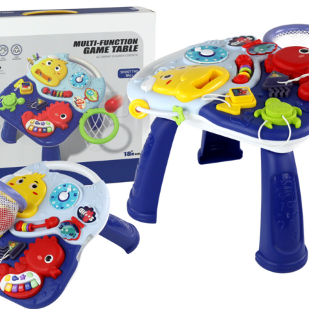 Stolik Edukacyjny 2w1 Zwierzęta Morskie Pianinko Zegar Kosz Piłki Stolik Edukacyjny 2 w 1 z uroczym morskim motywem, który wzbudzi zachwyt Twojego malucha i zapewni mu niezapomnianą zabawę! Ten wyjątkowy stolik został zaprojektowany z myślą o rozwijaniu zdolności i zainteresowań dziecka, oferując bogactwo funkcji edukacyjnych w atrakcyjnej formie. Stolik jest w eleganckim kolorze granatowym, który…
