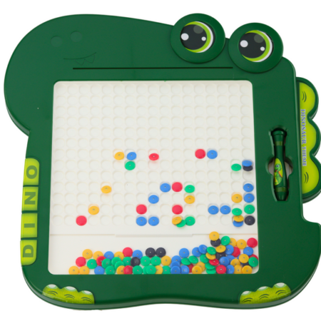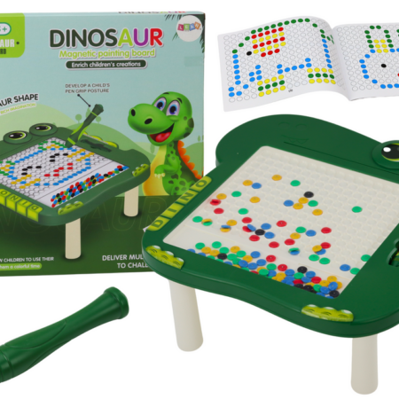 Stolik Tablica Magnetyczna Edukacyjna Dinozaur Pad Układanka Zielona Tablica magnetyczna w kształcie sympatycznego dinozaura to prawdziwa gratka dla małych odkrywców i artystów! Jej zielony kolor przypomina o tropikalnych lasach, gdzie te prehistoryczne stworzenia kiedyś żyły, dodając tablicy wyjątkowego uroku. Stolik stoi na czterech solidnych nóżkach, dając pewność, że będzie stabilny nawet w trakcie najbardziej ekscytujących…
