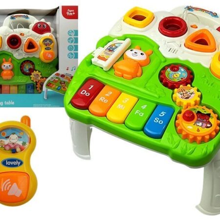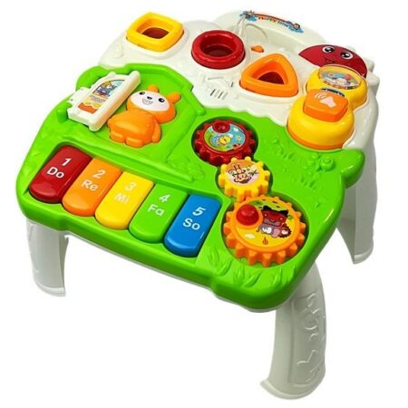 Stolik Edukacyjny dla Niemowlaka Pianinko Interaktywny stolik z wieloma aktywnościami to nie tylko pomysł na bardzo ciekawą zabawę, ale również niebanalny sposób na usprawnianie prawidłowego rozwoju maluszka. Biało-zielony blat stoliczka wyposażony jest w przyciągające wzrok dziecka elementy o różnych kształtach i kolorach. Przedmiot ten w przyjemny sposób stymuluje słuch i wzrok malucha, a także pobudza jego zdolności manualne i zmysły. Ciepła kolorystyka zachęci dziecko…