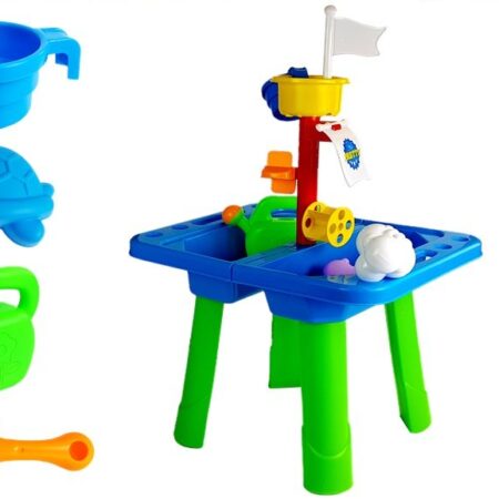 Stolik Piaskownica Foremki Łopatki Chmurka Zabawa w piaskownicy to frajda dla każdego malucha, uwielbia spędzać w nich czas i budować własne budowle i zamki. Proponujemy stojącą piaskownicę. Dołącz piasek i można zacząć zabawę. Chmurka dołączona do zestawu ma możliwość padania deszczu, tylko należy wlać wodę a z drugiej strony zacznie padać deszcz. Woda plus piasek…