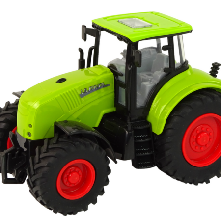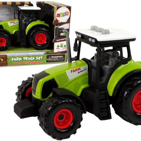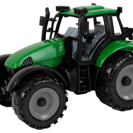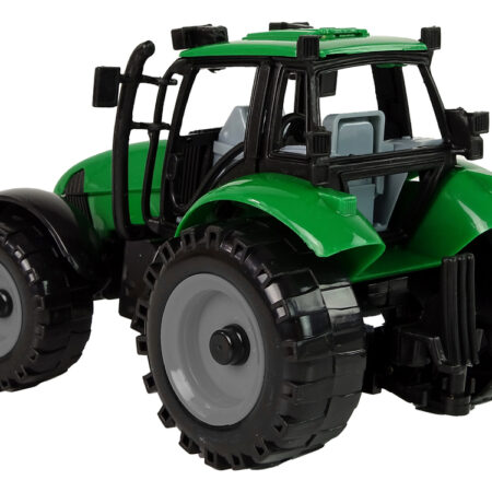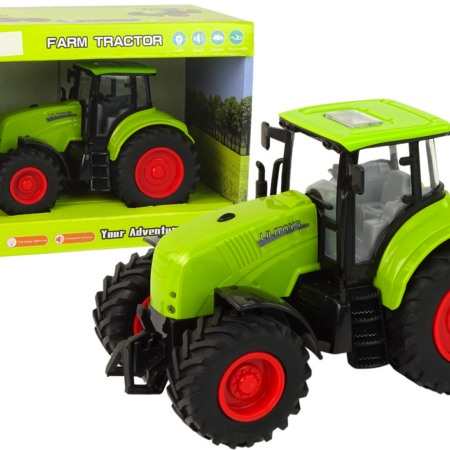 Traktor Maszyna Rolnicza Zielony Ciągnik Dźwięk Światła Traktor jest utrzymany w zielonym kolorze, co nadaje mu charakterystyczny wygląd. Duże koła z bieżnikiem pozwalają mu na pokonywanie różnych przeszkód na swojej drodze. Kabina traktora jest przeszkolona, co pozwala na zobaczenie całego wnętrza pojazdu, co jest szczególnie atrakcyjne dla dzieci i dodaje realizmu.Zarówno z przodu, jak…