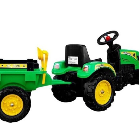 Duży traktor z przyczepką na pedały Zielony traktor Branson zostanie najlepszym przyjacielem Twojego dziecka. Jest on fantastyczną pomocą zachęcającą malucha do codziennej aktywności fizycznej — jednak jego obsługa nie jest skomplikowana. Malec ma do swej dyspozycji kierownicę i fotelik, dzięki czemu zabawa ta będzie znacznie łatwiejszą i mniej wymagającą rozrywką niż rower lub hulajnoga — wystarczy patrzeć przed siebie i pedałować….