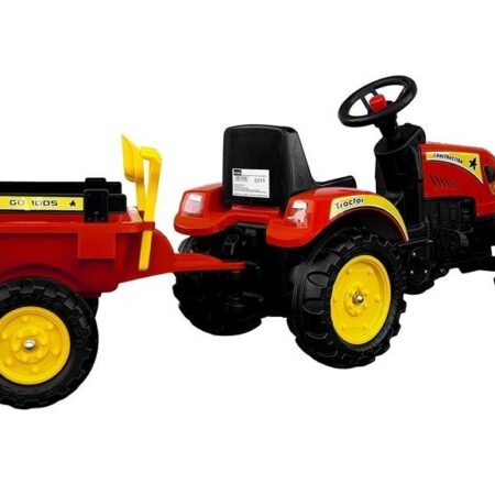 Duży traktor z przyczepką na pedały Czerwony traktor Branson zostanie najlepszym przyjacielem Twojego dziecka. Jest on fantastyczną pomocą zachęcającą malucha do codziennej aktywności fizycznej — jednak jego obsługa nie jest skomplikowana. Malec ma do swej dyspozycji kierownicę i fotelik, dzięki czemu zabawa ta będzie znacznie łatwiejszą i mniej wymagającą rozrywką niż rower lub hulajnoga — wystarczy patrzeć przed siebie i pedałować….