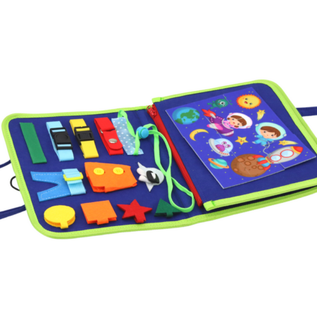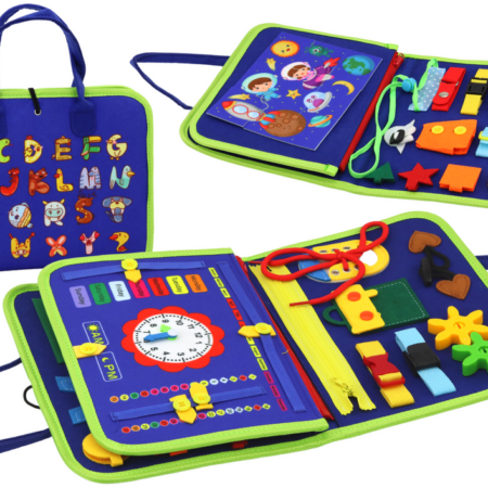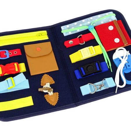 Walizka Tablica Manipulacyjna Sensoryczna Dla Malucha Tablica do ćwiczeń to świetna zabawka sensoryczna, która zachęca do samodzielnej zabawy, jednocześnie pomagając dziecku rozwijać podstawowe umiejętności, takie jak zakładanie i wiązanie butów oraz sposób na naukę samodzielnego ubierania się ! Idealny sposób na stymulowanie zmysłów twojego dziecka i rozwijanie jego zdolności manualnych. Walizka została wykonana z filcu…
