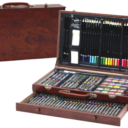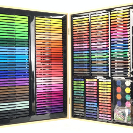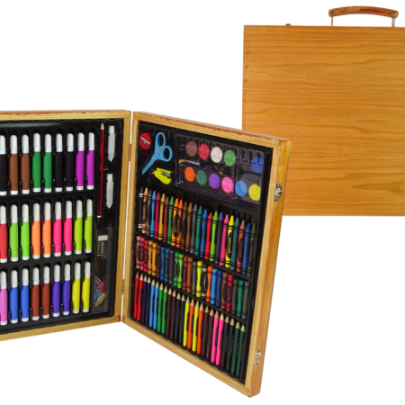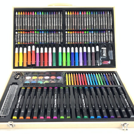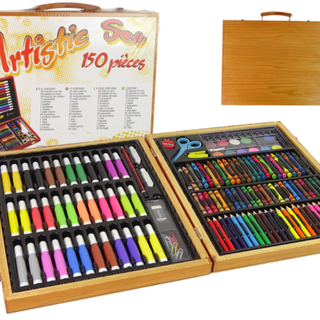 Duży Zestaw Artystyczny w Drewnianej Walizce Artistic Set 150 Elementów Kreatywna zabawa dla każdego – kompletny zestaw kredek, farb, pisaków ! Rozbudź wyobraźnie oraz kreatywne zdolności swojego dziecka z zestawem artystycznym. Magiczna walizka zawiera wszystko co potrzebne do zabawy: kredki, pisaki, pastele, farby i inne przydatne do twórczości artystycznej przedmioty: linijkę, gumkę, pędzelek itp….