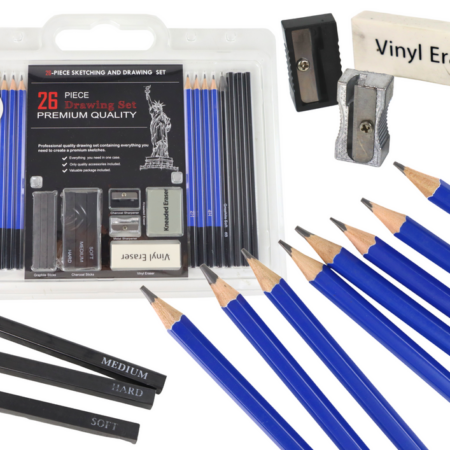 Zestaw Artystyczny Do Szkicowania Rysowania Ołówki Węgiel 26 El. Zestaw Artystyczny Do Szkicowania i Rysowania 26 El. to niezbędny sprzęt dla każdego miłośnika sztuki. Obejmuje aż 12 różnych ołówków, w tym od bardzo miękkich po twarde (5H, 4H, 3H, 2H, HB, B, 2B, 3B, 4B, 5B, 6B, 8B). Dodatkowo, w zestawie znajdują się 3 ołówki…