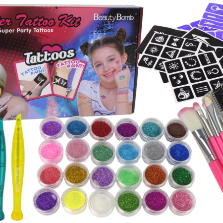 Zestaw Do Robienia Tatuaży Lakier Brokat Ten zestaw tatuaży jest doskonałym wyborem dla tych, którzy chcą eksperymentować i podobają się im tatuaże. Zestaw zawiera tatuaże kolorowe i czarnobiałe, dołączone akcesoria pozwolą na stworzenie własnych. Pokaż swój własny styl! Różne wzory ozdobią ciało malucha, a może sprawdzą się jako dopełnienie stroju na przebranie lub imprezy szkolne. …